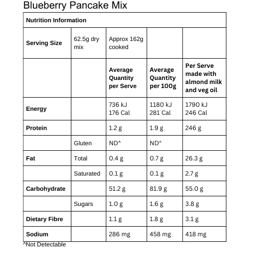 Vegan, Gluten Free Blueberry Pancake Mix 500g